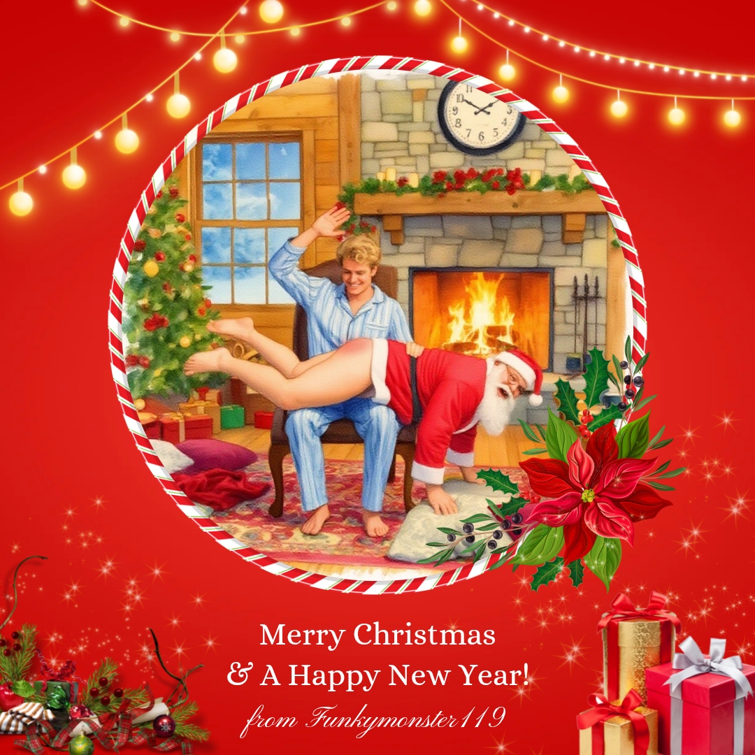 Smacks a plenty a bucking and bouncing Steven performs his infamous lapdance before being sent to bed with a blazing backside for being a naughty imp atoning and starting afresh leaving the year behind.