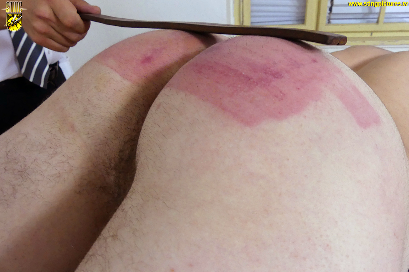 Young Jason Kelly (Kevin) is on the receiving end of his uncle’s belt after cheating in the midterm college exams. It’s a first time for this modern age lad but there’s a good chance now, as he nurses his burning backside of course, it will make him see sense.