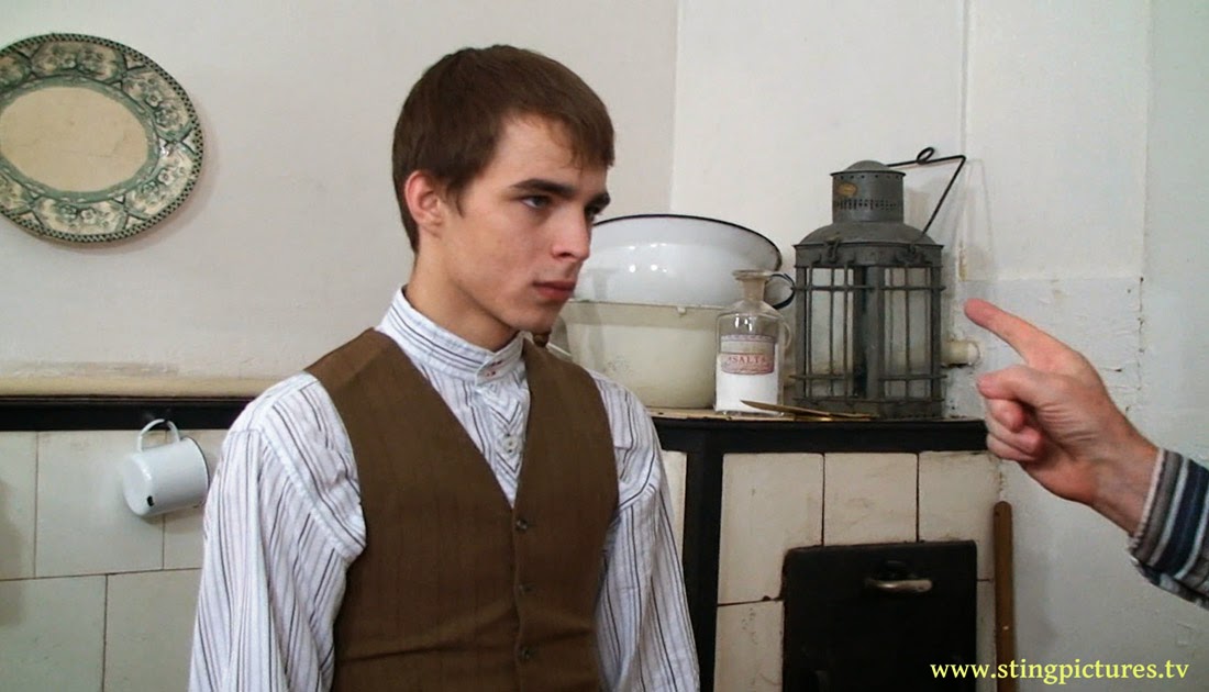 A. At the time we decided to do this as an experiment. The two films were being made concurrently and we felt that the contrast on one DVD could produce an exciting result. The distinct variation of age and history between the stories worked well, and in a single presentation we feel provided greater interest. Costume-wise it was a nightmare. Rob is very particular that things are right costume-wise, and he also demands that the lads get clean clothes to wear after each day’s filming. I seem to remember we had two racks of the stuff on constant standby for each different segment of filming.Q6. STING films have become very well known for their authenticity, and, in my opinion, this is one of the reasons why many people find STING films so enjoyable. This level of authenticity must require a good deal of research. Am I correct?A. We do a great deal of research into the subjects we film, from both from the costuming point of view and also the dialogue. We don’t, of course, always get it right and a lot of latitude has to be kept in the story-telling to continually return to people’s favourite subject, i.e. spanking. From an historic point of view the intensity of CP action within one story would not have happened, but most of the events portrayed certainly would have at some stage in time. One of the reasons we started Sting was to get away from the type of CP production that has a headline title such as, “My Fifties Schooldays”, which when played ends up badly costumed and shot in a nineteen nineties front room! One thing for sure is that keeping the retro look and style is time consuming and expensive, but that is our filmic genre: to do anything else would just be following the herd.
