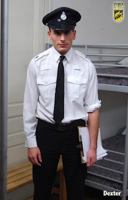 In the legendary British Borstal system specifically designed to re-train delinquent youths three main instruments of punishment were used. These of course were, apart from a good over the knee spanking, often delivered for minor infringements. In Stings latest hard hitting documentary drama we firstly encounter the senior officer disciplining trainee Castle (Dale Brady) for slacking and bad behaviour. His monthly report is very poor and for this lad it’s going to be a hard over the knee spanking both on underpants and bare bottom.Trainee Johnson (Toby Haines) is also on the monthly report black list except he’s over stepped the mark a little too often and earned himself a dose of the infamous rattan punishment cane. He’s not going to get away lightly and he too finds himself firstly over the officer’s knee to receive a hard well laid on bare bottom spanking.To get the cane as well after this is really going to sting and so it does as Johnson growls and hisses at each burning cut of the well-oiled rattan.Next Trainee Hollister (Marco) is caught smoking again. This with his lack of attention to duty infuriates Officer McClelland (Dexter) Hollister is soon staring at the polished wooden parquet floor as his bare bottom receives the stinging hard slaps that only Officer McClelland can lay on so well.It doesn’t stop there though and after leaving the trainee to contemplate his now roasted rear the officer returns with the broad thick leather punishment strap. Now Hollister is bucking and yelling as this cruel instrument makes its mark and what marks they are as this bee sting like instrument can testify.Unfortunately for Trainee Castle (Dale Brady) the day of his official court ordered birching arrives and he strips ready to mount the birching Pony. This particular piece of equipment had been used in this Borstal since 1910 and today it is again going to support and hold down yet another very naughty youth. Castle will count out a full thirty strokes of the birch that relentlessly scourge his defenceless bare buttocks red raw.These boys can take it hard but woe betide the boy who whilst being re trained manages to encounter all three, a real Borstal Trilogy!Dexter as Officer McClellandLinks