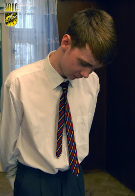 It’s back to Coombe Hall College and an introduction at the new batch of 6th formers. A catalogue of misdemeanours kicks off with Michael King (Tom Nuttall) being escorted by the Head Boy (Darren) for a none too courteous visit to the Heads study! With no time to spare the headmaster leaves the disciplinary measures in the hands of the Head Boy. Crawford swiftly orders King to the common room and lays on a good firm spanking.This is followed in time honoured fashion by a raw dose of the gym slipper, face down on a bench, bare bottom well raised. Its clear Crawford takes pride in his work and Michael’s cute little butt is soon blistered red as the smooth and painful rubber sole makes its mark!Meanwhile, Jason Shaw is a very youthful looking senior, it’s therefore surprising that he has managed yet again to shop lift wine from the local off-licence (liquor store). This despicable act will somehow be kept within the confines of the school but the headmaster is naturally furious not to mention Jason’s Head of House the gruff German master Mr Kruger.The lad’s foolishness is soon answered with a bottom burning session across the Housemasters kneebut it doesn’t end there as he is ordered to return that evening in pyjamas for an official birching. Defiance like this must be met with an exemplary punishment and the head intends that this time he should get it.Also at Combe Hall is Paul Bishop (Damien Drake), who has the dubious honour of being the Deputy Headmaster’s son. Not an easy weight to carry and even more so if you are caught cheating. For this offence the punishment is mandatory and young Paul is soon touching his toes in the Heads study for a stinging caning. By the time he reluctantly begins to lower his white briefs the burning stripes are clear to see; now he must endure the remaining cuts across his already very tender bare bottom. Afterwards Paul can’t rest easy as it’s now going to be a case of ‘wait till your father gets home!’..Later that evening poor young Paul’s already stripped bottom is going to feel the wrath of dads palm and very painful brown leather belt!Pride comes before a fall, and although Crawford, the illustrious Head Boy, might think he’s got away with, he hasn’t. Crawford’s luck runs out when the Deputy Head finds out that he he has knowingly purchased stolen wine from Jason Shaw. As head boy he knows the risk of breaking the rules and the Deputy Head is not at all happy with the appalling example he has shown.A well deserved spanking is swiftly followed but a sharp bare bottom whacking with a thick beech wood rule. Crawford’s very rounded and now incendiary red bare bottom is testimony to its effective punishment.All these wayward sixth formers now really do have something to “wine” about!NB: US readers should note that in Britain the term “Sixth former” applies to seniour students, usually aged 18 and over, in their final year of school education.There is a link to the Sting 18.USC.2257 declatation in the right hand column of this blog