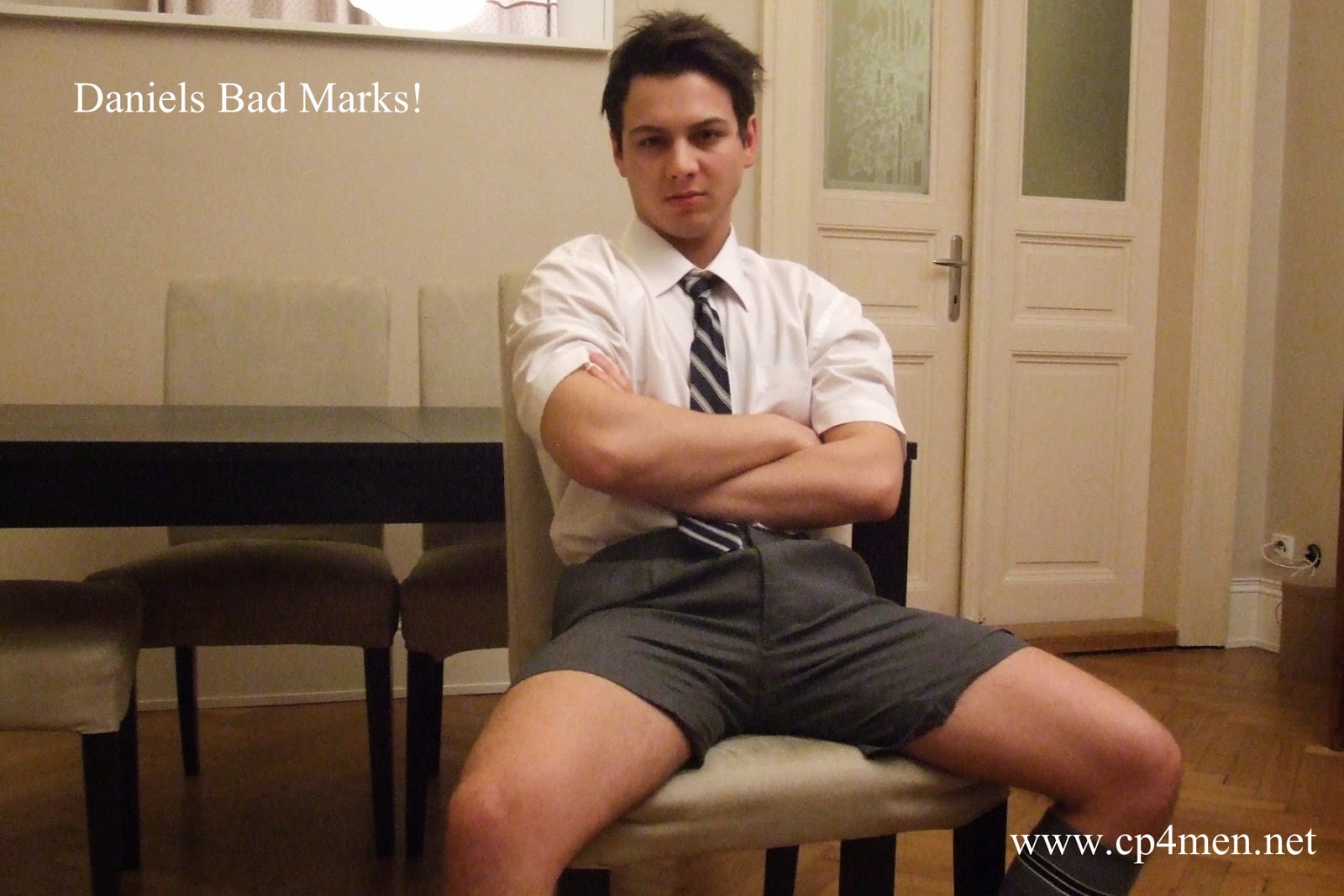 CP4Men: Dad is not happy. Daniels end of term exam results are not good and after many warnings Dad has run out of patience so its over the knee for for this young man! Daniels bottom is certainly very spank-able and Dad soon gets the point across. Dad starts on trousers then underwear then bare leading up to a very sore red bottom. Daniels tears do not stop Dad from giving him some extra punishment over the family dining table with the hairbrush!