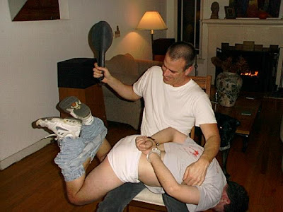 The MAN WHO SPANKS! here is, I believe,a guy from the San Diego area, and is himself featured in a photo series (don’t know that there is a video) where he is bare bottomed and OTK for a truly SEVERE SPANKIING with various hairbrushes. He has a lovely rear end and it truly suffers if the pix are anything to go by. I have admired it for years. I always wanted to get spanked with him.