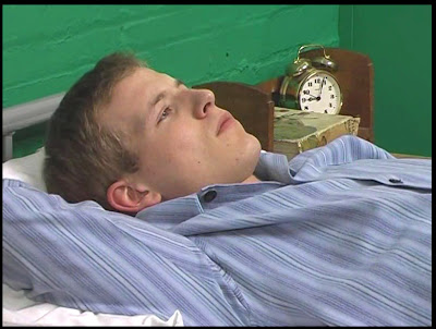 For his first punishment, following an unsuccessful attempt to escape from Approved School (a type or reformatory for young miscreants) Brett is ordered to humiliatingly remove his pajama bottoms and go over the knee for a firm bare bottom spanking, affording the audience what must certainly be many people’s favourite view of our young hero.