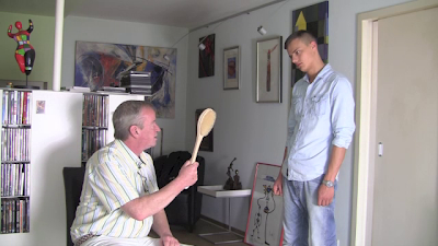 At the end of it all he is told to kneel in the corner to cool his burning bottom and think about his deeds.