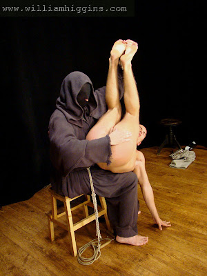 The very straight Maxim Petrovic takes his turn across the Mad Brown Monk’s knee in a spanking session from Czech Guys Next Door by William Higgins