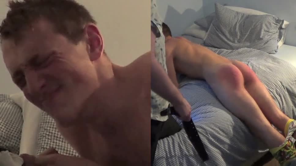 It doesn’t stop there though and after leaving the trainee to contemplate his now roasted rear the officer returns with the broad thick leather punishment strap. Now Hollister is bucking and yelling as this cruel instrument makes its mark and what marks they are as this bee sting like instrument can testify.