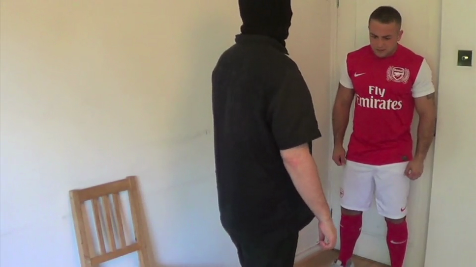 Jay tries to keep calm and but all that stops when Mr X orders Jay to remove his shirt and his football shorts!