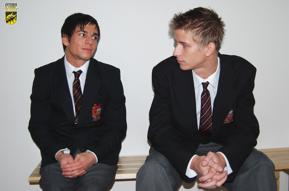 The latest release from Sting Plus is Rooftop Rebels – staring Sebastian and new Sting actor Tom. Unlike most Sting videos, the Sting plus series combines spanking with gay sexWhere only Pigeons dare to tread, two students, Hutchinson (Sebastian) and Monroe (introducing new Sting actor Tom Nuttall) decide to head to the College attic and get down to some very personal studies. Unfortunately it’s reported to the Head of House that there are strange noises coming from the rooftop. Thinking it’s probably pigeons getting in through the wire he dispatches Mr Konrád the caretaker to investigate.Now caught red handed and out of bounds the two lads sit outside their Housemasters study to await sentence. For Hutchinson he’s been there before but for his young companion Monroe this is going to be the first time he has had to face such discipline.Their Housemaster is a fairly liberated man of the world and is not annoyed at the attic antics that had taken place. He is more concerned that the two of them should have been in class and had been missed and unaccounted for.Determined at least to teach Hutchinson a lesson the boys jackets and trousers are ordered to be taken off. Hutchinson soon finds himself face down across the master’s knee getting his insolent and very rounded bottom soundly spanked.