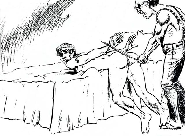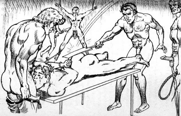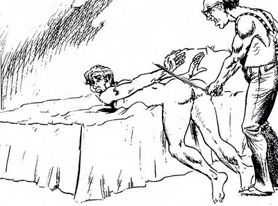 I have seen work by this guy for years. There has never been any concensus, as far as I was concerned, as to who the artist was. Now I know. His name is Bill Ward (No, not the Bill Ward who drew that hot randy bottom avatar for DRUMMER). This Bill Ward is primarily into FEMDOM (shudder). but has drawn some very hot m/m stuff over the years. He has a very distinct, very cartoony facial style. Here is the link to his archive (WARNING: there are a lot of drawings of big-boobed people with vaginas). Bill Ward Archives.