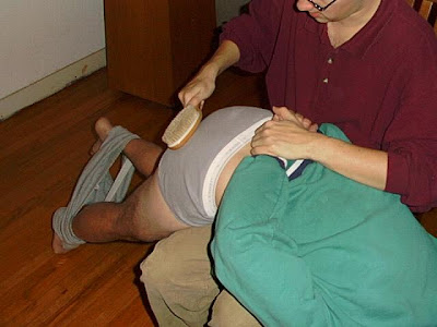 In this scene, the incorrigibly cute Barry, (who also appears today in a posting at BMBW) receives a bare bottom belting from his House Master after being caught fighting. As anyone who has seen this scene will attest, the master certainly knows how to use the strap, and Barry takes a large number of obviously very painful strokes, which eventually reduce the handsome lad to tears.