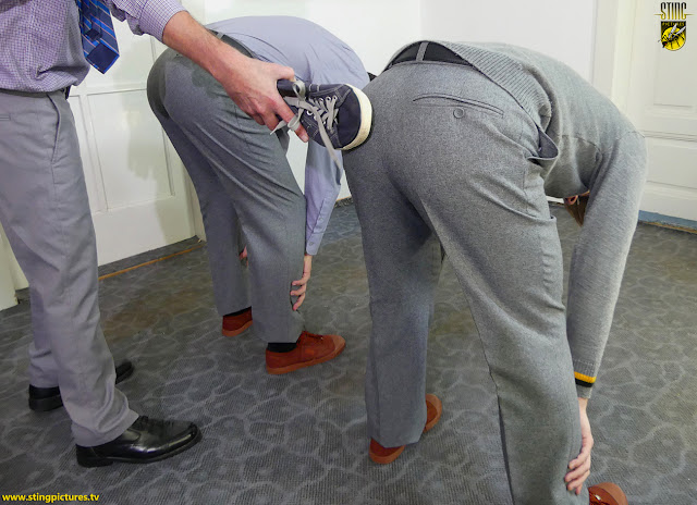 He of course is not amused by their irresponsible behaviour. As far as he is concerned enough is enough and now they will have to face the consequences. If they are absent together they can be punished together and a whacking with the gym slipper is a very good place to start!