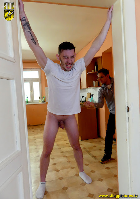 Marco discovering that Peter, in his absence, has been riffling through his stuff takes the matter in hand. Peter needs to learn a lesson and no better way to teach a hunky young gentleman manners than a good caning. Ordered to stand in the door frame Peter waits and its not long before the sound of a swishy stinging rattan doing its job can be heard.