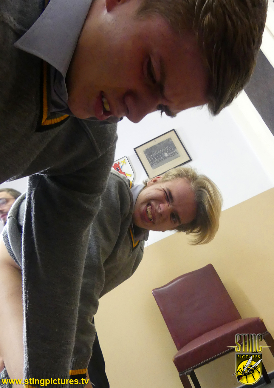 I have always adored Sting’s schoolboy spanking scenarios, particularly those set in Australia and South Africa, because that’s where even the big boys wear shorts as part of their uniform – so the shorts are quite authentic, although, dare I say it, Sting could achieve a greater degree of sexiness if they’d consider shortening the boys’ shorts by a good few inches? I only offer this as a suggestion because I’ve seen several tumblr and Facebook sites that show the big 6th Form lads at such schools in those countries wearing very brief shorts at 18, and with their pert bottoms and juicy thighs, they just look so INCREDIBLY caneable! However, I won’t complain because what I’m just thrilled to see is that Sting have taken the authenticity a degree further, carrying these scenarios into the modern age by allowing the boys to keep their own modern coloured boxer-briefs on as punishment underpants, instead of the white briefs they always seemed to have to wear before in school discipline scenarios. It’s a massive improvement to have abandoned the white boner-killers, though I realise they have their place and they are a turn-on for some Sting fans – they just don’t really do it for me. The lads here both have superbly smackable and cheeky bottoms and the short coloured underpants they’re both wearing complement them beautifully! Naughty Nathan’s briefs in particular, with those horizontal stripes, bring out the roundness of the lad’s bottom exquisitely! I’d love to go to work across the seat of them with one of my very whippy, supple senior canes – what a target those stripes would present!