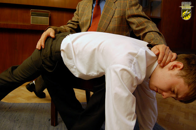 Not as formal as this nor fancy looking school—just small town rural high school in 1960’s—but coach paddled bare assed in locker room and i guarentee it hurt as much or more than these guys—–Wearing a suit and tie does not diminish a bare butt padddling—nor does cheap hand me downs in rural school a bare butt hurts the same!