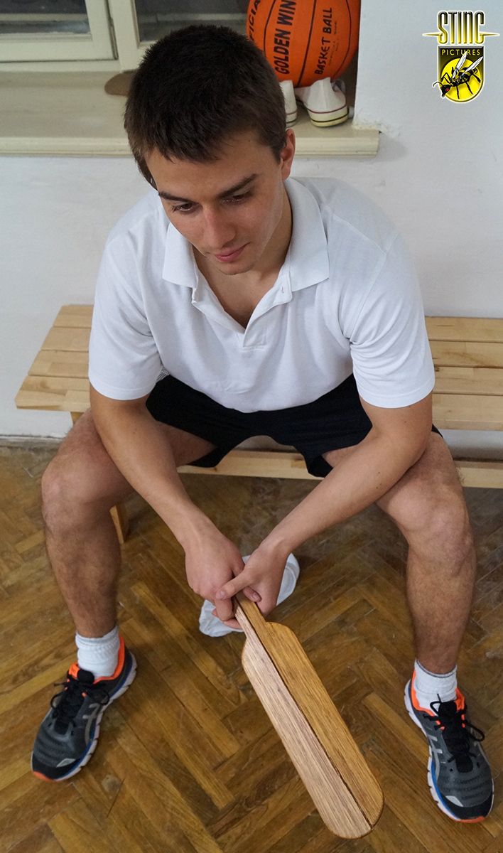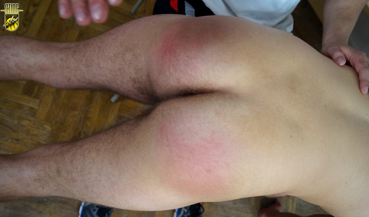 Now this hunk of a player’s bottom is bared and the spanking steps up a notch. He’s really getting it but it going to be the flat wooden paddle that penetrates through, scorching poor Watts firm backside red raw.