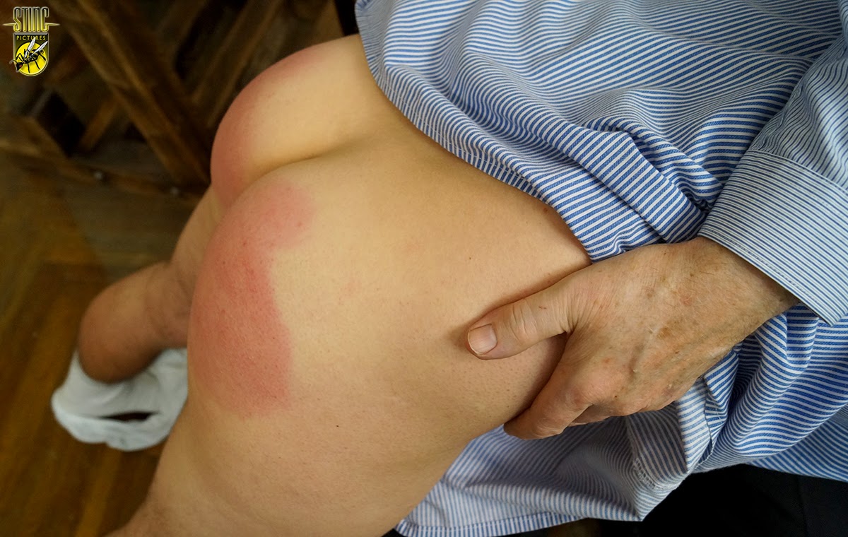 After this humiliating long series of stinging slaps the prison strap and rattan cane will burn their message across the lad’s already scorched backside too.