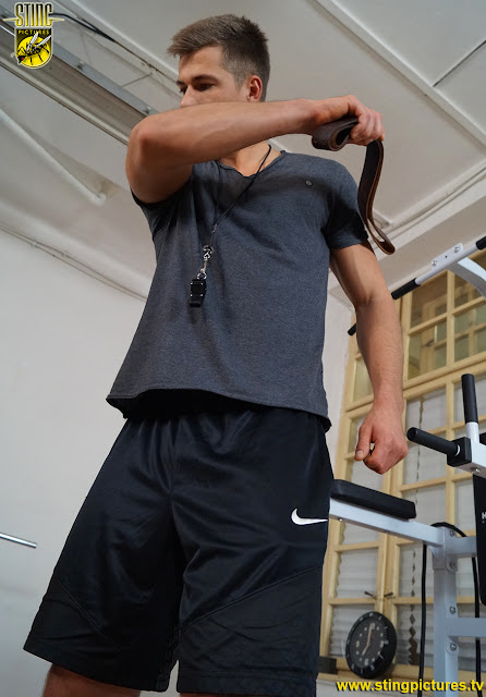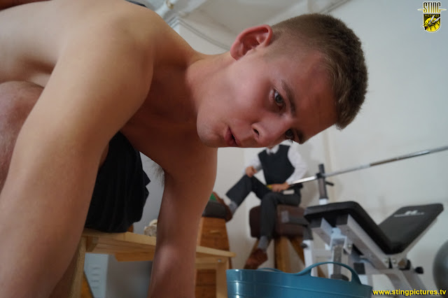 Then to follow up and hone his memory for the future, the PT Masters ex military strap will be used to good effect. Ordered to fetch it like the naughty boy he is, Robbie Parker will now strip, bend over the bench and feel its scorching leather tongue!
