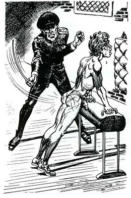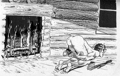 I have seen work by this guy for years. There has never been any concensus, as far as I was concerned, as to who the artist was. Now I know. His name is Bill Ward (No, not the Bill Ward who drew that hot randy bottom avatar for DRUMMER). This Bill Ward is primarily into FEMDOM (shudder). but has drawn some very hot m/m stuff over the years. He has a very distinct, very cartoony facial style. Here is the link to his archive (WARNING: there are a lot of drawings of big-boobed people with vaginas). Bill Ward Archives.